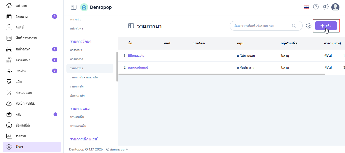 การเพิ่มรายการยา