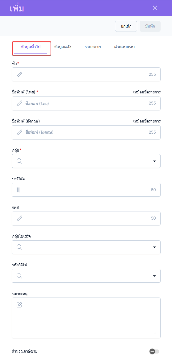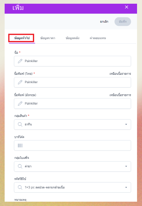 ชื่อ : ชื่อรายการยาที่จะแสดงตอนค้นหารายการในระบบ
