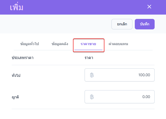 ผู้ช้งานสามารถกำหนดราคาขายเพื่อใช้สำหรับประเภทราคาที่ผู้ใช้งานเลือกให้ลูกค้า
