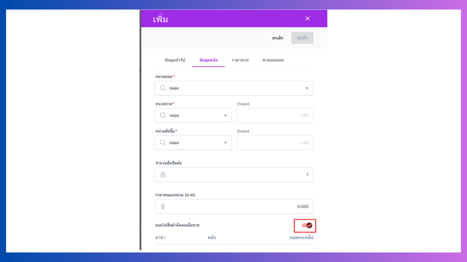 ยอมให้สินค้าติดลบเมื่อขาย
