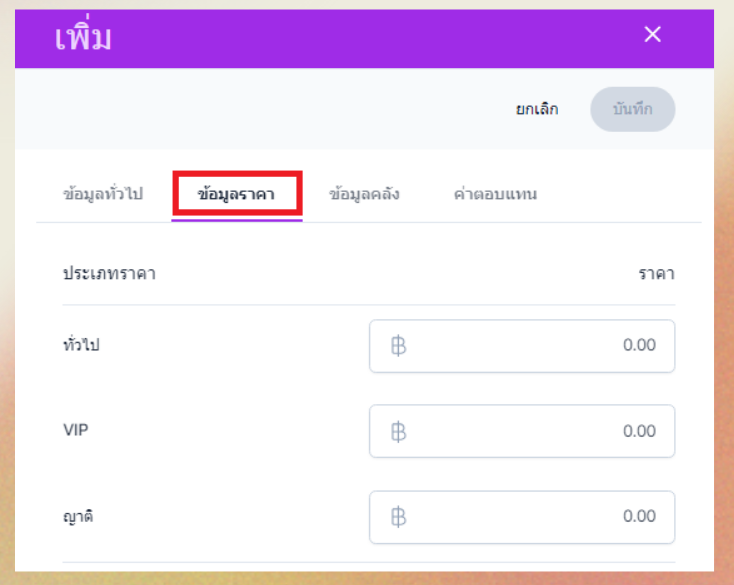 สามารถเลือกจัดการราคาแต่ละประเภท