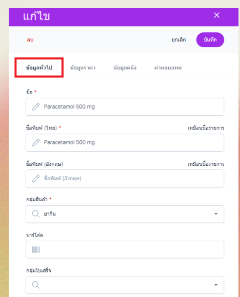 เลือกข้อมูลทั่วไป จากนั้นเลือกแก้ไขข้อมูลตามต้องการ