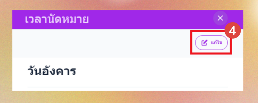 - คลิกแก้ไขตามวันที่ต้องการกำหนด ระบบจะแสดงหน้าต่างข้อมูลตารางนัด