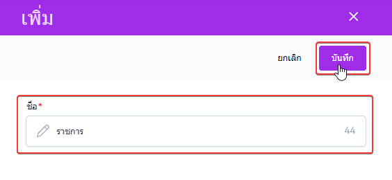 เมื่อผู้ใช้งานกรอกเสร็จสิ้น คลิกปุ่ม บันทึก