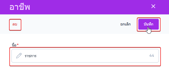 เมื่อตั้งค่าเสร็จสิ้น คลิกปุ่ม บันทึก ระบบจะบันทึกการแก้ไขอาชีพของรายการที่ผู้ใช้งานเลือก