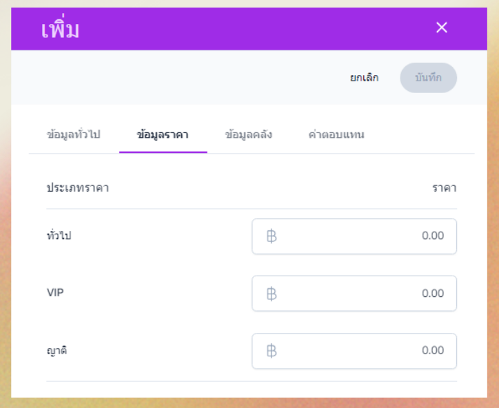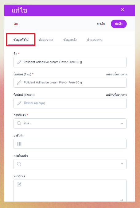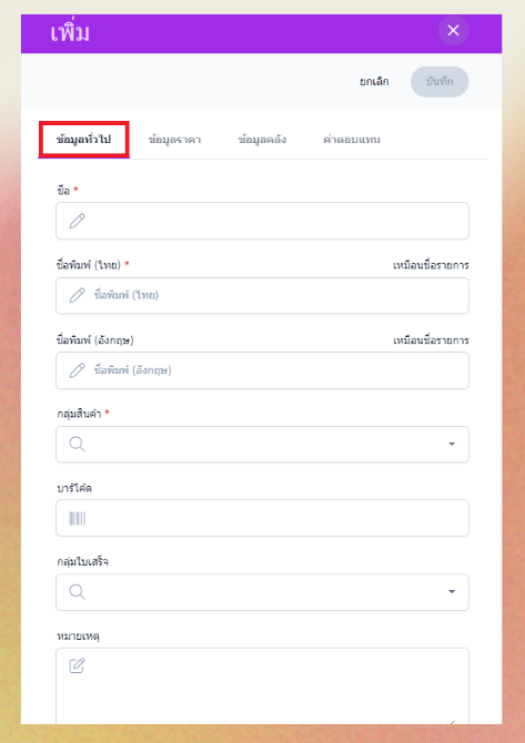 ชื่อ : ชื่อรายการสินค้าที่จะแสดงตอนค้นหารายการในระบบ