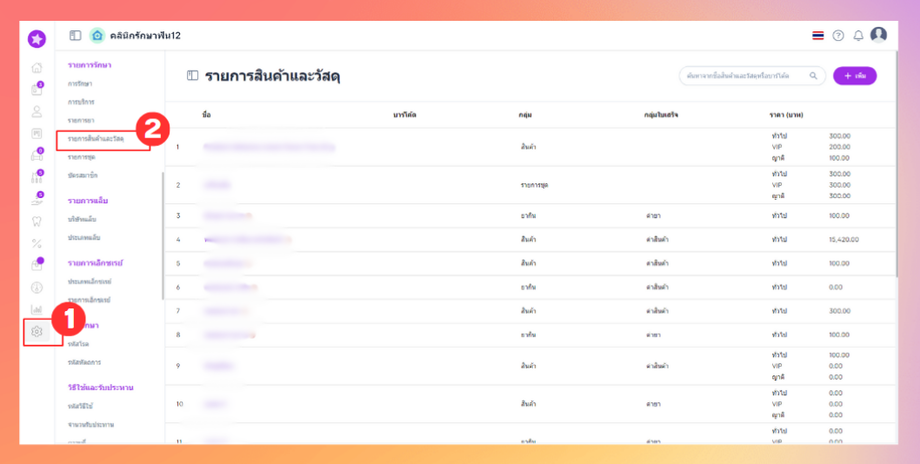 เลือกหัวข้อรายการสินค้าและวัสดุ