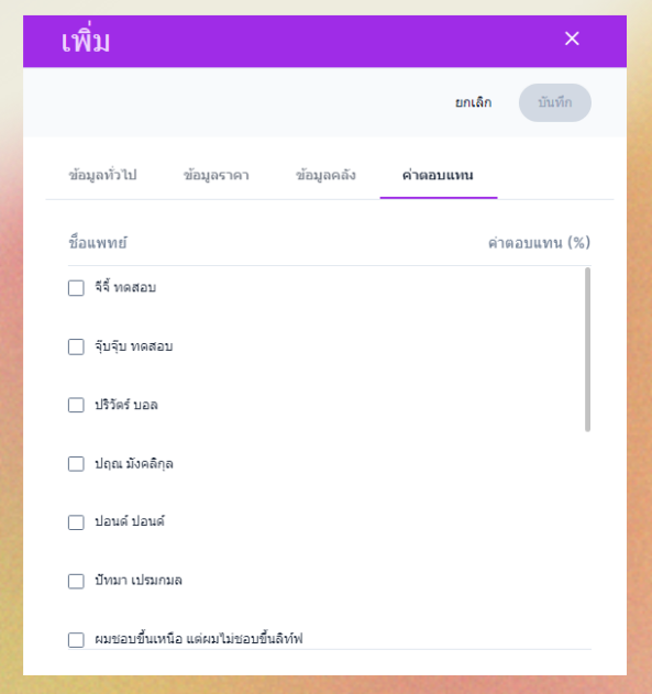 เมื่อกำหนดค่าตอบแทนแพทย์ ในขั้นตอนการสั่งรายการจะสามารถเลือกแพทย์เพื่อรับค่าตอบแทนตาม % ที่ทำการตั้งค่าไว้ได้