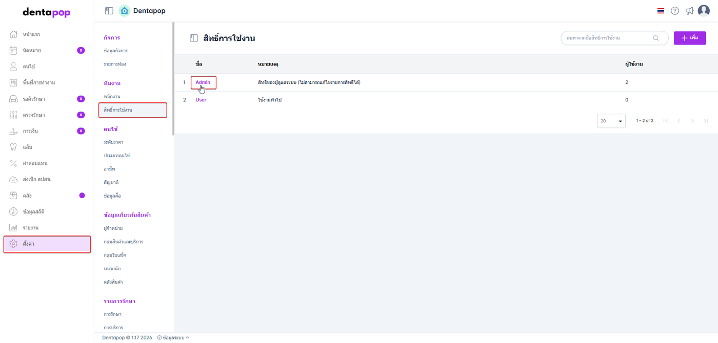 กำหนดสิทธิ์การใช้งานกับพนักงาน