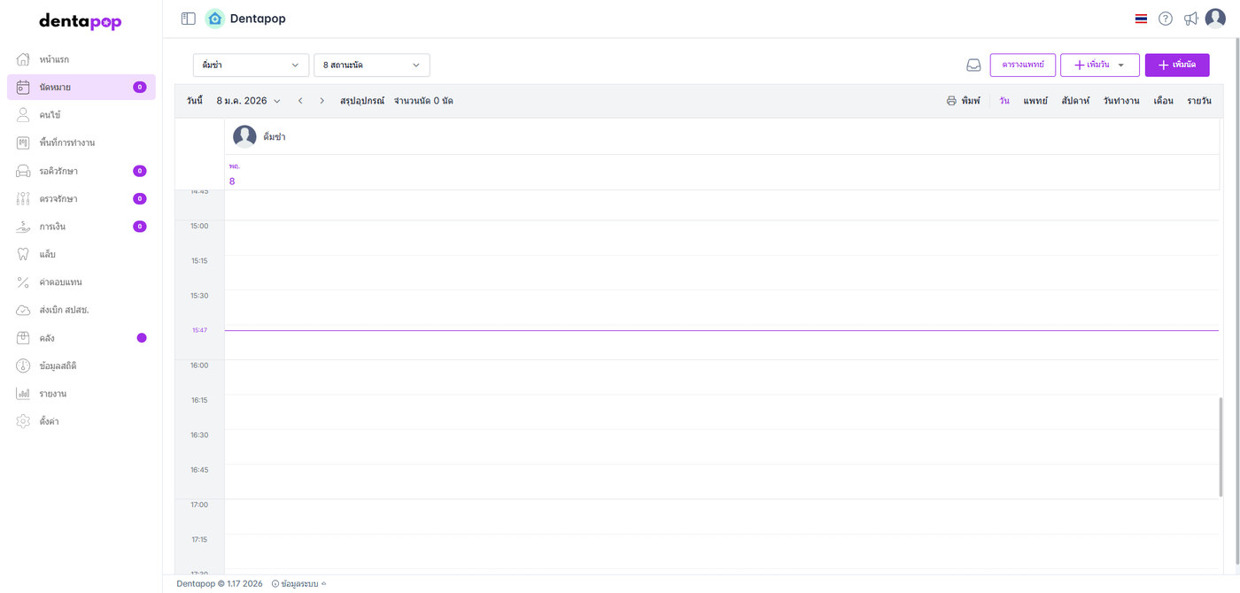 ผู้ใช้งานคลิกที่นัดหมายระบบจะแสดงรายการ แสดงคนไข้เฉพาะแพทย์ที่ล็อคอิน
