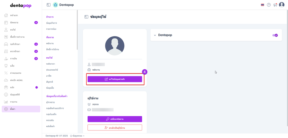 4.ผู้ใช้งานไปที่แก้ไขข้อมูลส่วนตัวของพนักงาน