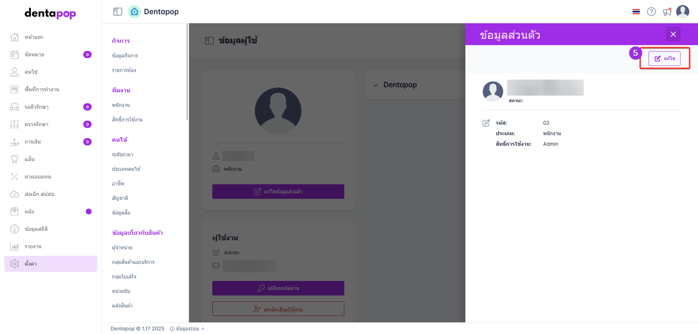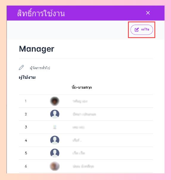 5.ผู้ใช้งานไปที่แก้ไขเพื่อทำการแก้ไขสิทธิ์ของพนักงาน