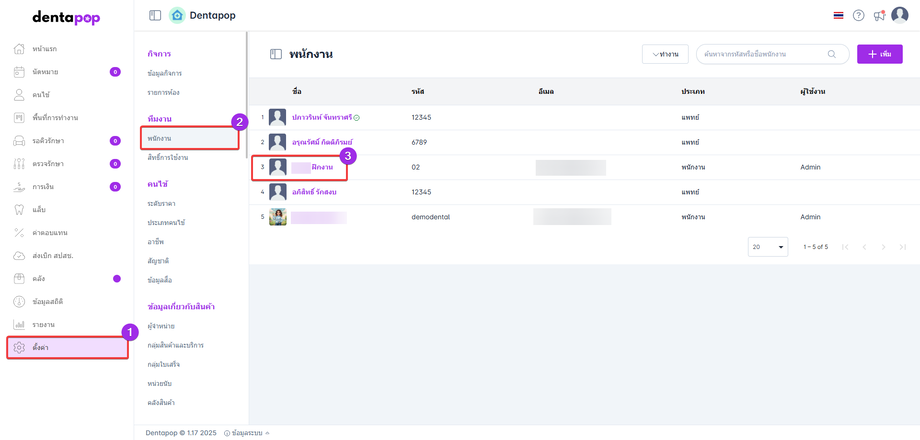 ไปที่ตั้งค่า > พนักงาน และเลือกพนักงานที่ต้องการกำหนดสิทธิ์