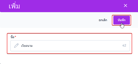 เมื่อผู้ใช้งานกรอกเสร็จสิ้น คลิกปุ่ม บันทึก