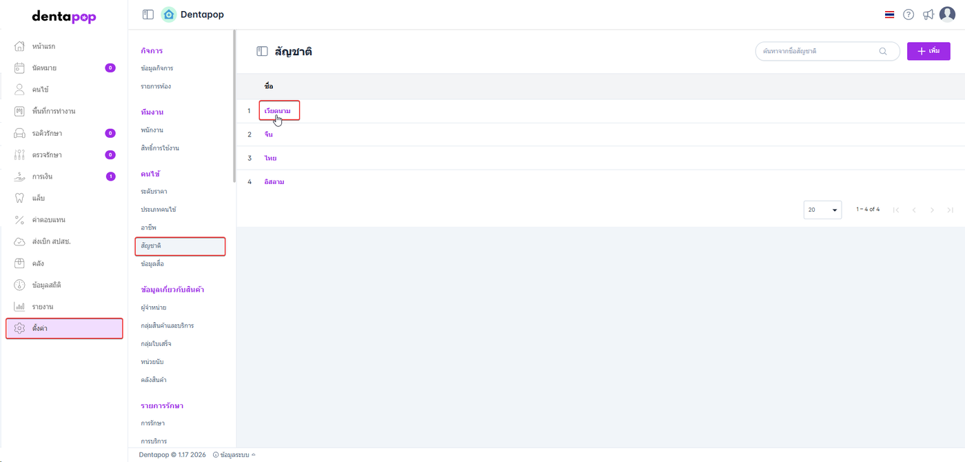 เมื่อผู้ใช้อยู่ในหน้าสัญชาติ คลิกชื่อสัญชาติที่ผู้ใช้งานต้องการแก้ไข