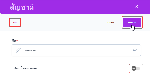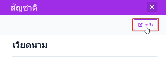 ผู้ใช้งานคลิกปุ่ม แก้ไข เพื่อเปิดหน้าต่างการตั้งค่าแก้ไขสัญชาติ