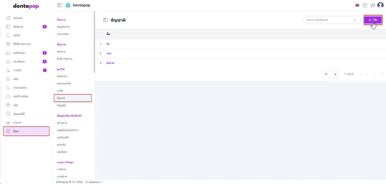 เมื่อผู้ใช้อยู่ในหน้าสัญชาติ คลิกปุ่มเพิ่ม