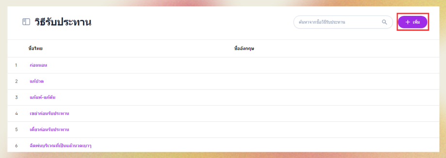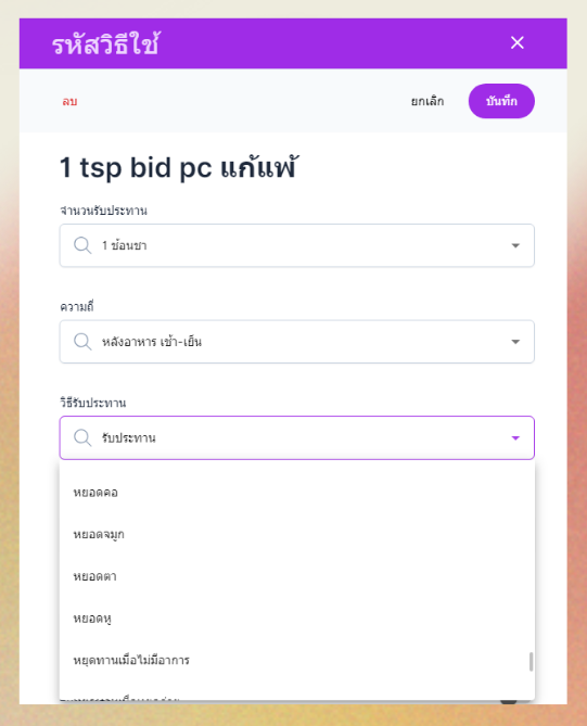 ระบบจะแสดงหน้าต่างเพิ่มวิธีรับประทาน