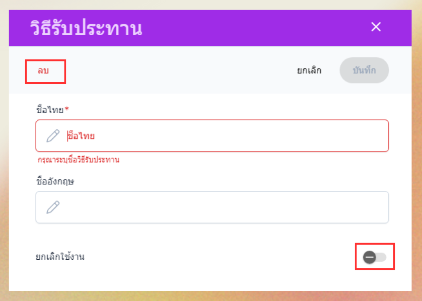 - ชื่อไทย : ชื่อภาษาไทย และ ใช้แสดงในระบบ