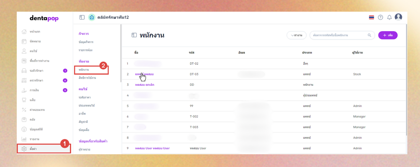 - เลือกชื่อพนักงานที่ต้องการแก้ไข