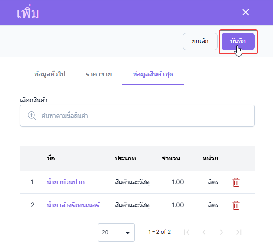 ผู้ใช้งานสามารถเลือกสินค้าเพื่อจัดเป็นรายการสินค้าชุด
