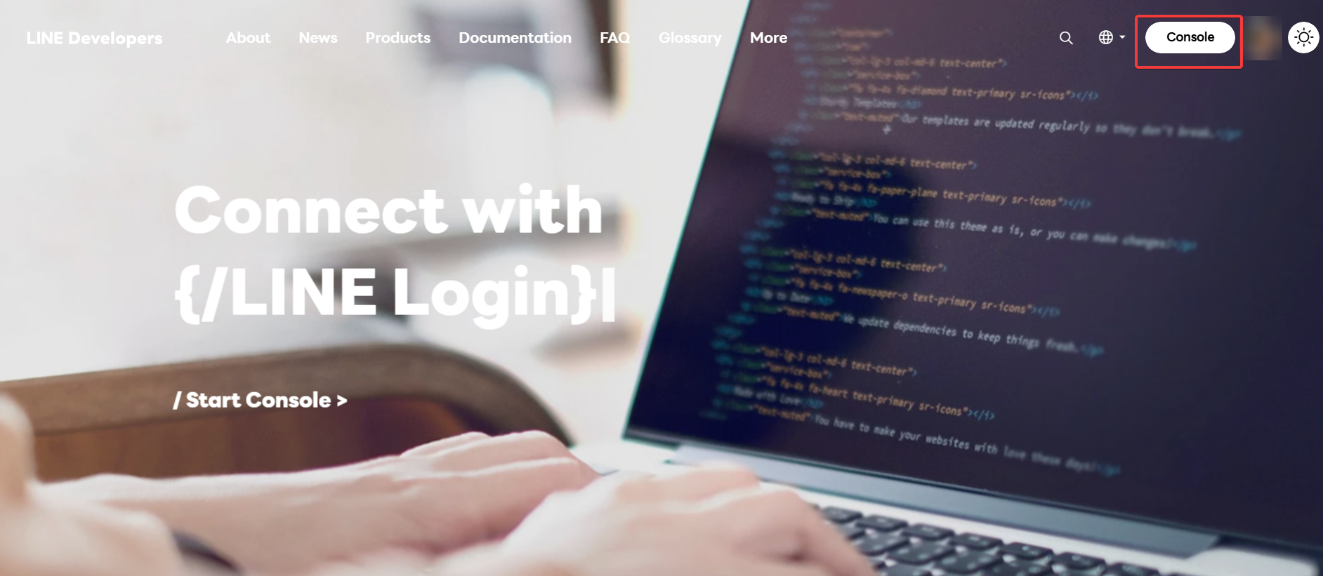 ผู้ใช้งานจะเข้าสู่หน้าเว็บของ Line Developers Console จากให้ผู้ใช้งานคลิก Console ที่มุมขวาบน